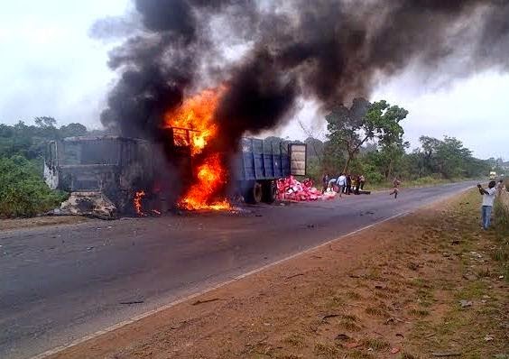 Photos: Truck up in flames along Lagos-Ibadan Expressway